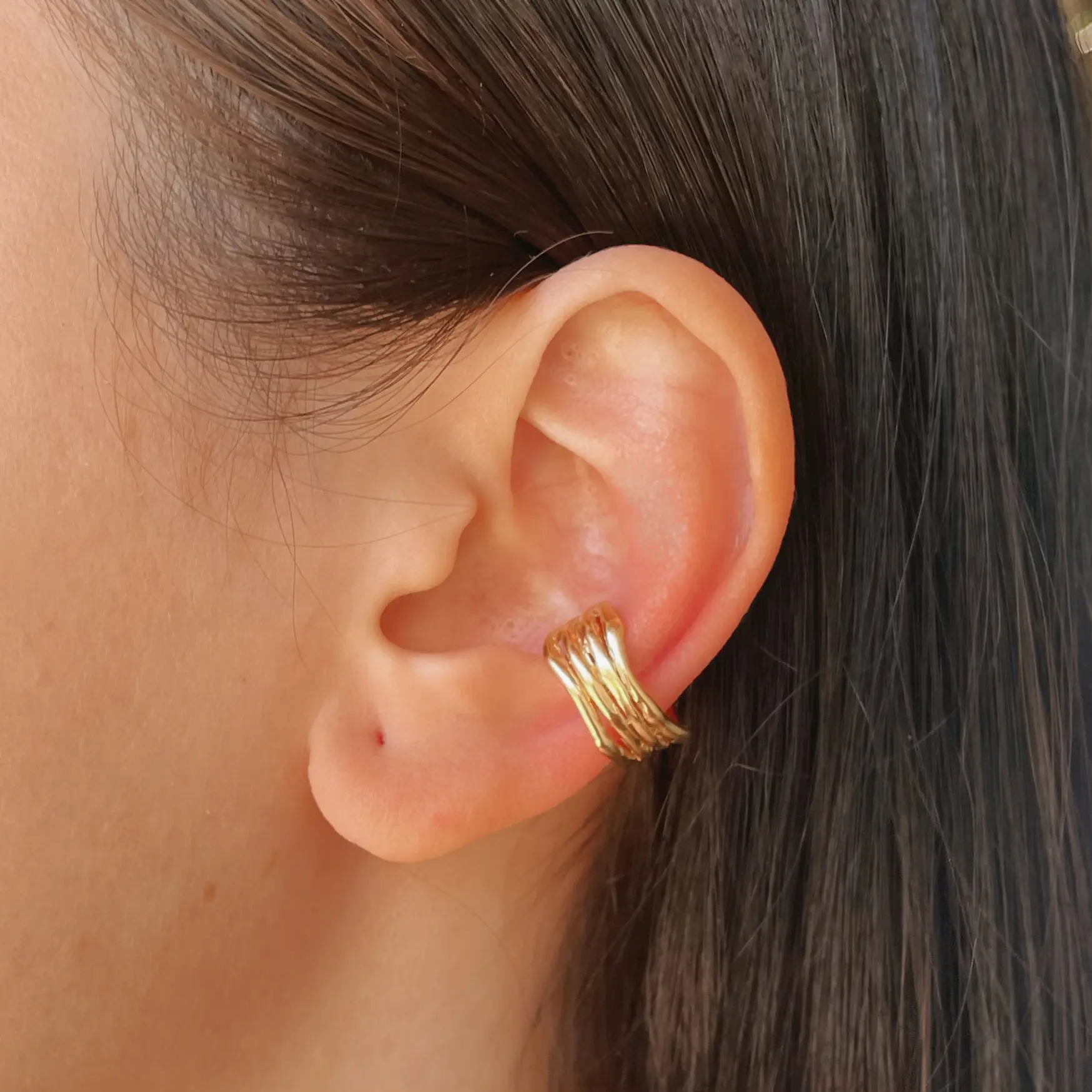 Arete tipo grapa de plata .925 baño de oro estilo clásico 4 lineas por Teresa González